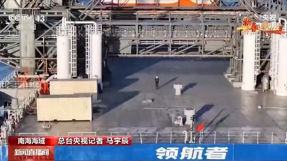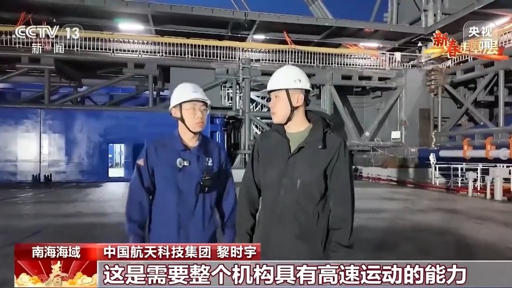总台记者 马宇辰:“领航者”号海上回收平台长144米,宽50米,满载排水量超过2.5万吨,是个名副其实的大家伙。但是发射塔架的高度接近70米,加上船体和天线层楼高,所以它的重心是非常高的,再加上冬天的海况比较恶劣,我的感觉就是整个船体都在不规律地摇晃着。